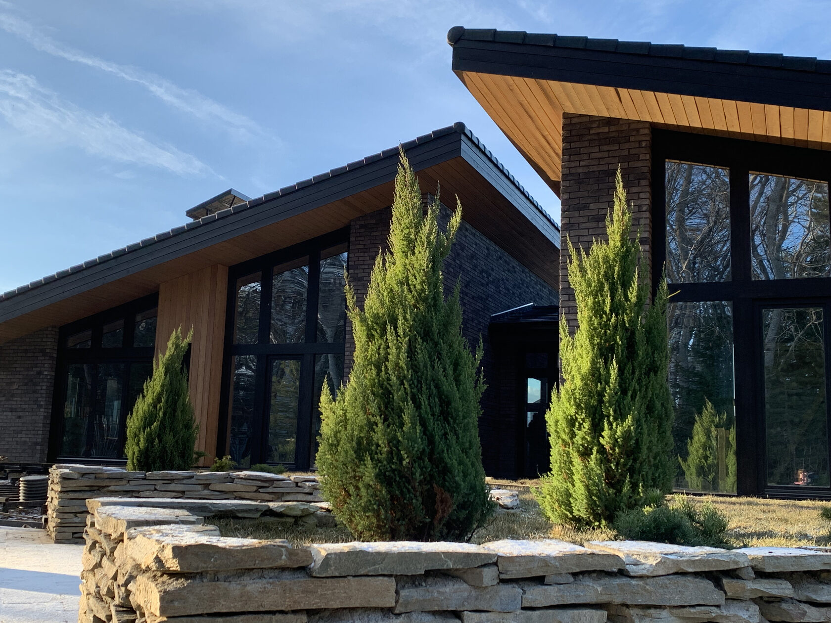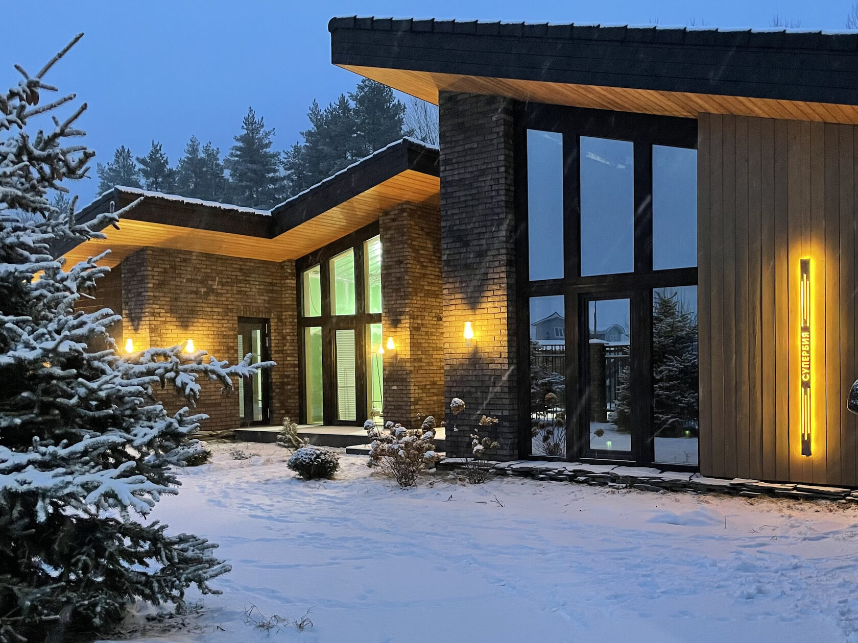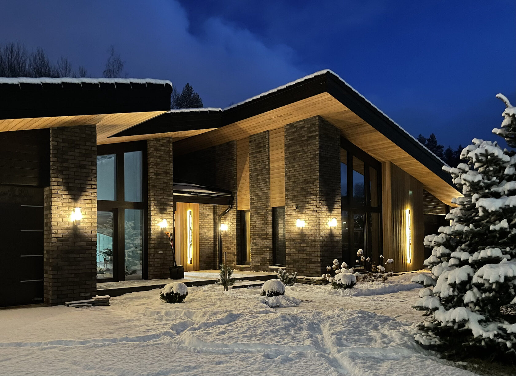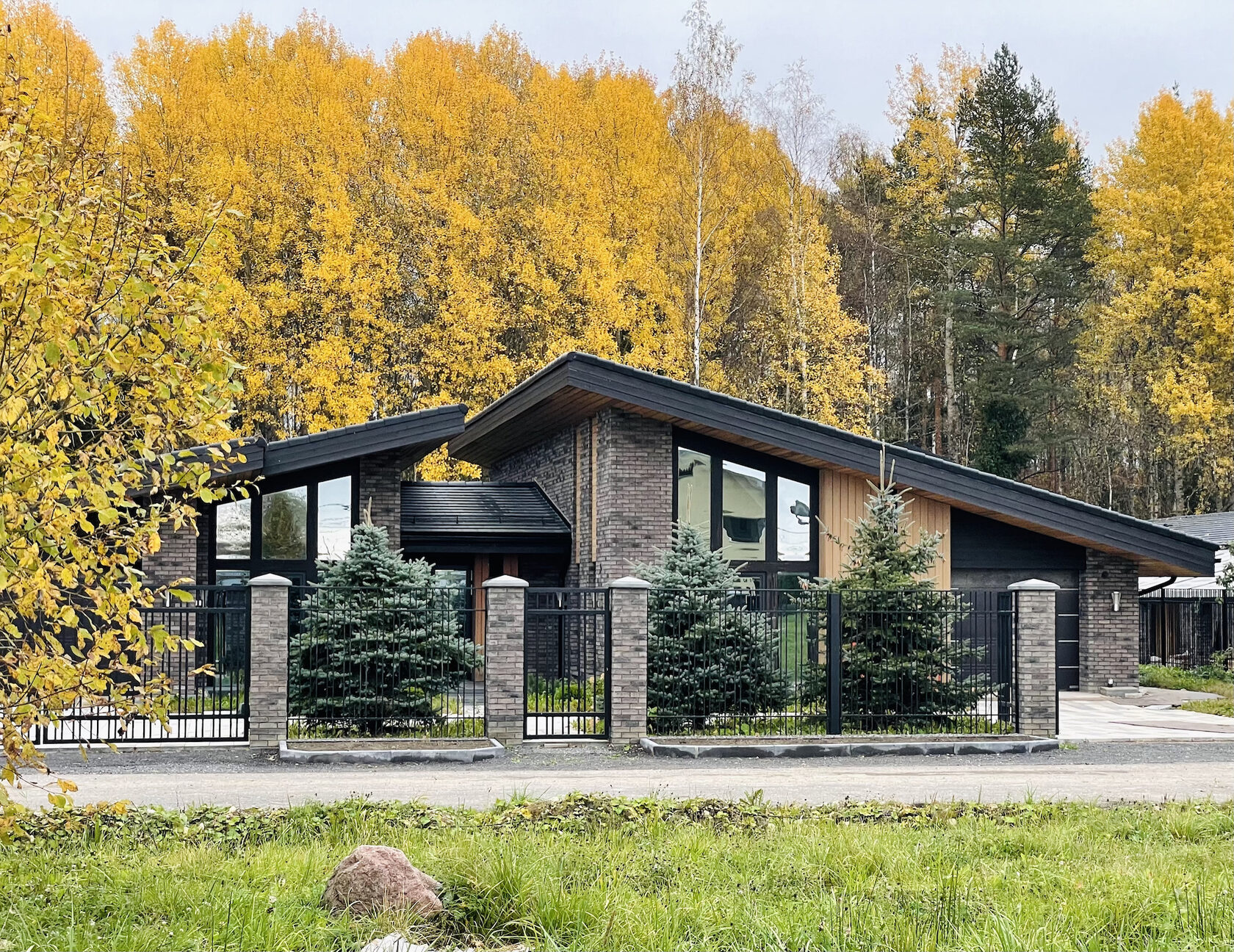 Проект "Шале НУОВО" - одноэтажный, необычный дом с большими и светлыми панорамами дает возможность по новому ощутить архитектуру "Северного Шале". Пространственно проект состоит из трех объемов - два больших корпуса и переходной холл, который вмещает в себя тамбур и входную гардеробную.